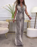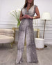 Avslappnad leopardmönstrad ficka med rund hals och breda byxor