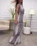 Casual klänning med leopard och färgglatt tryck och djupt V