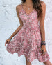 Casual klänning med leopard och färgglatt tryck och djupt V