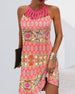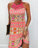 Casual klänning med leopard och färgglatt tryck och djupt V
