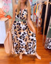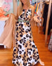 Casual klänning med leopard och färgglatt tryck och djupt V