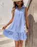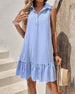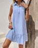 Klänning Kort Ärms Krage Enfärgad Knappar