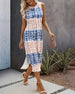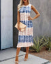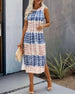 Avslappnad klänning med huva i ficka i färg med blocktryck