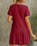 Enfärgad klänning med V-ringad spets med trekvartsärm