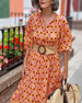 -50% Klänning med vintagetryck och puffärm
