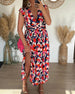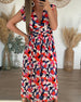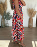 Casual klänning med leopard och färgglatt tryck och djupt V