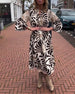 Casual klänning med leopard och färgglatt tryck och djupt V