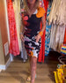 Casual klänning med leopard och färgglatt tryck och djupt V