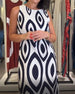 Avslappnad klänning med huva i ficka i färg med blocktryck