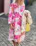 Moderiktig tryckt midiklänning med rund hals