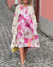 V-ringad klänning med delad ärm för semestertryck