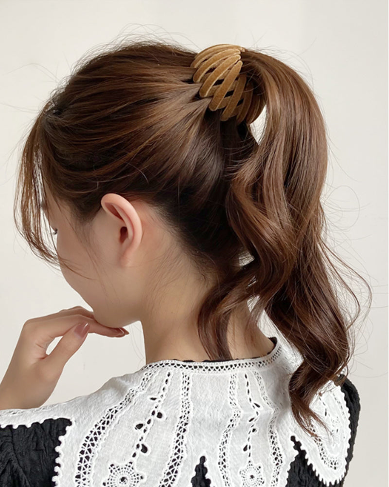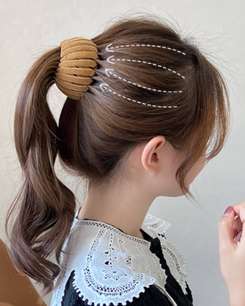 Modedesign, helt ny, hög kvalitet! Beskrivning: Produktnamn: Bird's Nest Hair Tie High Ponytail Färg: som visas Material: plast/harts Storlek: öppen ca 10 cm, ej öppen med 6 cm Snygg design Hårband för fågelboet och är infällbart.Utvalda material, fantastiskt utförande, unik personlighet, överkomligt pris, unik stil.Denna produkt inklude...