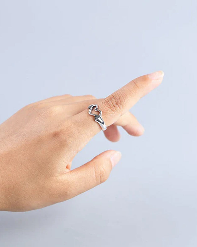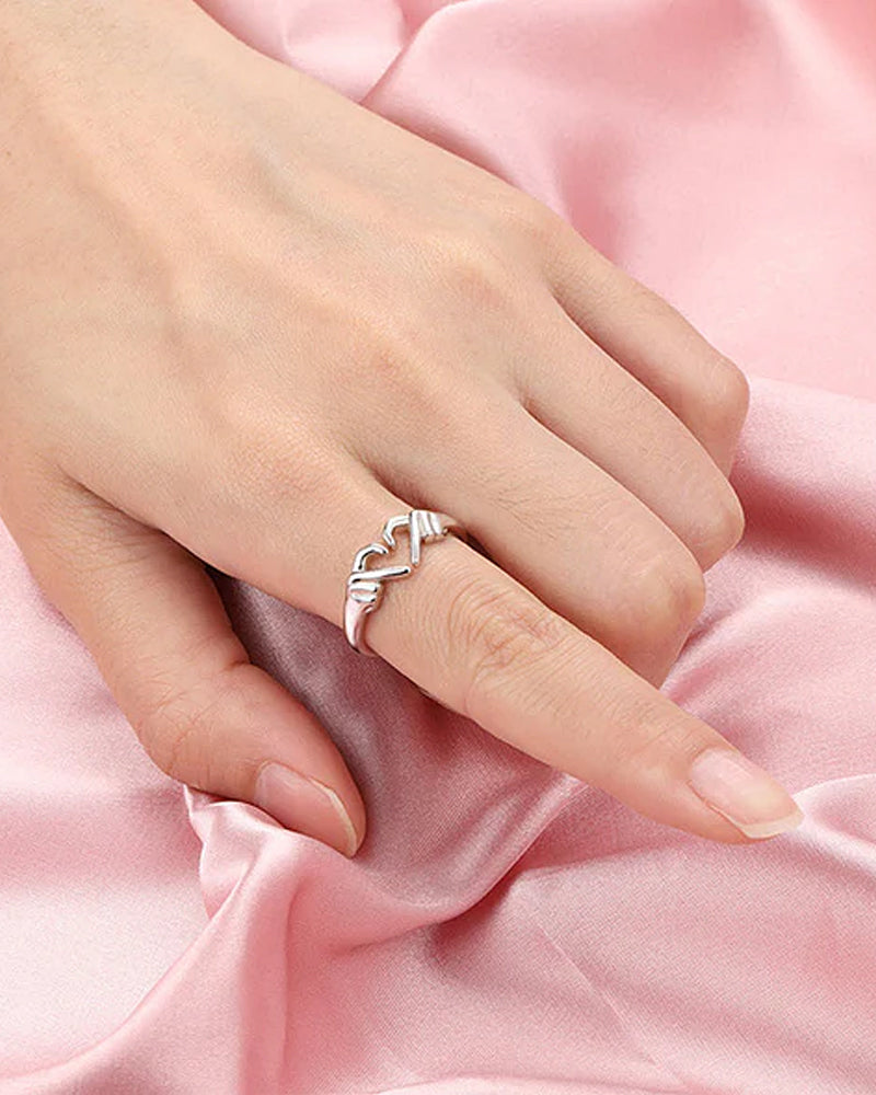 FUNKTIONER Dubbel ihålig kärlekshjärta asymmetri vanlig silver öppningsring. Den läckra söta lilla ringen är öppen och justerbar. Passar de flesta fingrar/knogar. Material: Kvalitet sterling silver med vitguld pläterad, långvarig och hållbar. Högpolerad, allergivänlig, nickelfri, blyfri, bekväm passform. Perfekt present: Denna silverring med kä...