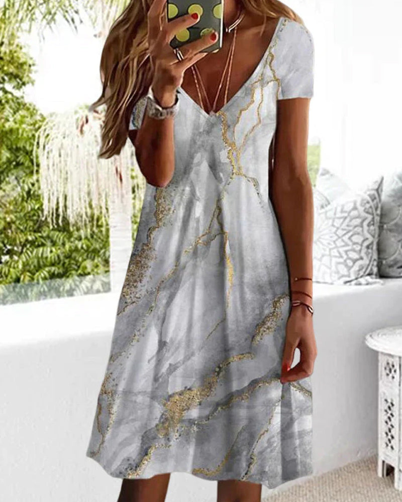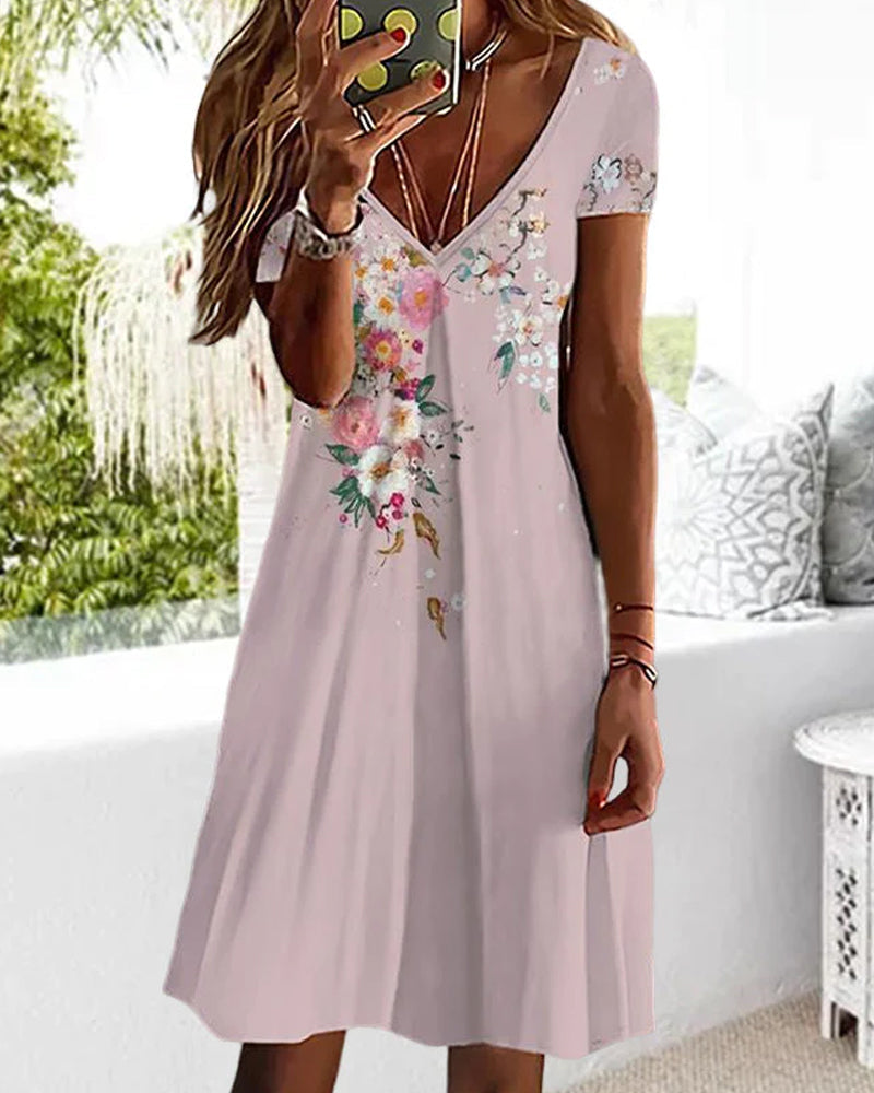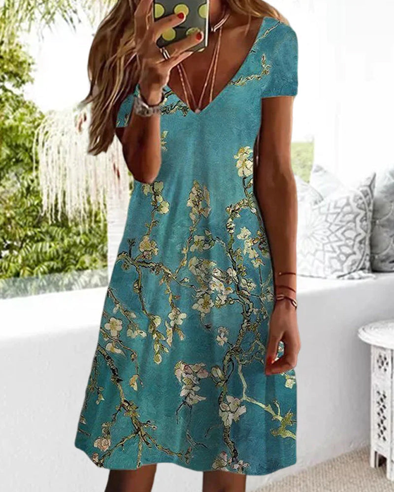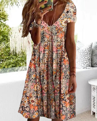 SPECIFIKATIONER Stil: Elegant Material: Bomullsblandningar Klänningstyp: Skiftklänning Klänning längd: Knälängd Urringning: V-hals_V Mönstertyp: Tryckt Typ av ärm: Vanlig ärm Ärmlängd: Kortärmad Passform typ: Vanlig Säsong: Vår, Sommar, Höst Tillfälle: Dagligen Paketet innehåller: 1 x Klänning STORLEKSTABELL(cm) Storlek Byst Längd Armlä...