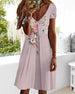 SPECIFIKATIONER Stil: Semester, Elegant Material: Bomullsblandningar Klänningstyp: A-linje Klänning längd: Knälängd Urringning: V-hals_V Mönstertyp: Blommig Typ av ärm: Fladdermushylsa Ärmlängd: Halvärm Detaljer: Dragsko Passform typ: Vanlig Säsong: Vår, Sommar, Höst Tillfälle: Dagligen, Semester Paketet innehåller: 1 x Klänning STORLEKSTABELL...