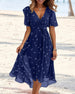 SPECIFIKATIONER Stil: Enkel, Semester, Chic Material: 5% Spandex, 95% Polyester Klänningstyp: A-linje Klänning längd: Knälängd Urringning: V-hals_V Mönstertyp: Tryckt Typ av ärm: Vanlig ärm Ärmlängd: Kortärmad Passform typ: Vanlig Säsong: Vår, Sommar, Höst Tillfälle: Dagligen, Semester Paketet innehåller: 1 x Klänning STORLEKSTABELL(cm) ...