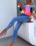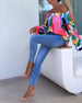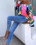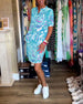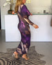 Casual klänning med leopard och färgglatt tryck och djupt V