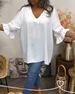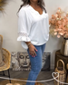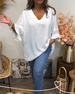 Moderiktig enfärgad blus med V-ringad lyktaärm