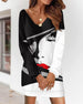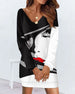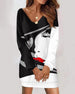 Casual klänning med leopard och färgglatt tryck och djupt V