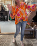 Blus Med Retro Knapp Detaljer Och Små Florala Tryck
