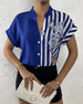 SPECIFIKATIONER Topptyp: Blusar Stil: Enkel, Kontor Tillfälle: Dagligen, Arbete Urringning: V-hals_V Mönstertyp: Färgblock Typ av ärm: Vanlig ärm Ärmlängd: Kortärmad Passform typ: Vanlig Säsong: Vår, Sommar, Höst Detaljer: Lappverk, Knappar Material: Spandex, Polyester Paketet innehåller: 1 x Blus STORLEKSTABELL(cm) Storlek Byst L...