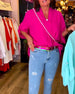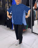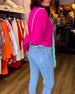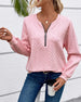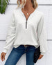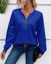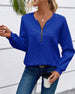 Casual enfärgad blus med V-ringning och trekvartsärm