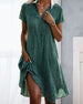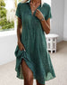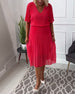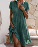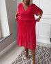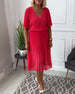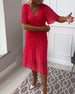 Casual enfärgad plisserad klänning med V-ringning och halvärm