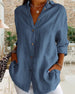 Casual enfärgad V-ringad långärmad skjorta med knäppning