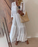SPECIFIKATIONER Stil: Enkel Material: 40% Cool Bomull,60% Polyester Klänningstyp: A-linje Klänning längd: Maxi Urringning: Slag Mönstertyp: Enfärgade Typ av ärm: Vanlig ärm Ärmlängd: 3/4 ärm Detaljer: Lappverk,Ficka Passform typ: Vanlig Säsong: Vår,Sommar Tillfälle: Dagligen Paketet innehåller: 1 x Klänning STORLEKSTABELL(cm) St...