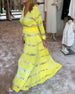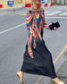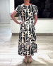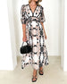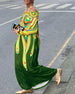 Elegant långklänning med tryck med en axel och utsvängningsärm