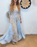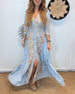 Elegant maxiklänning med blommigt tryck med lång ärm