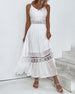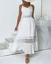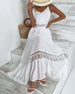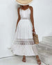 SPECIFIKATIONER Stil: Elegant Material: Bomullsblandningar, Spets Klänningstyp: Cami Klänning längd: Maxi Urringning: V-hals_V Mönstertyp: Enfärgade Detaljer: Rygglös, Snöra upp, Urgröpande Passform typ: Vanlig Säsong: Sommar Tillfälle: Dagligen, Fest Paketet innehåller: 1 x Klänning STORLEKSTABELL(cm) Storlek Byst Längd S 90 128 M 95 12...