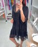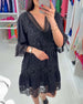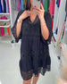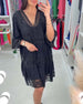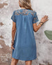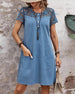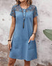 Enfärgad fickklänning med ihålig spets med kort ärm