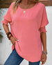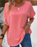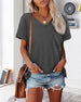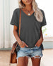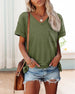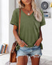 Enfärgad ficka V-ringad kortärmad T-shirt