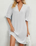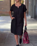 SPECIFIKATIONER Stil: Enkel Material: Bomullsblandningar Klänningstyp: Skiftklänning Klänning längd: Knälängd Urringning: V-hals_V Mönstertyp: Enfärgade Typ av ärm: Vanlig ärm Ärmlängd: Kortärmad Detaljer: Ficka Passform typ: Vanlig Säsong: Sommar Tillfälle: Dagligen Paketet innehåller: 1 x Klänning STORLEKSTABELL(cm) Storlek Byst Längd S ...
