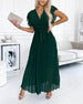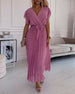 SPECIFIKATIONER Stil: Elegant Material: 100% Polyester Klänningstyp: A-linje Klänning längd: Midi Urringning: V-hals_V Mönstertyp: Enfärgade Typ av ärm: Volangärm Ärmlängd: Kortärmad Detaljer: Snöra upp, Blandade Passform typ: Vanlig Säsong: Sommar Tillfälle: Dagligen Paketet innehåller: 1 x Klänning STORLEKSTABELL(cm) Storlek Byst...
