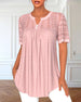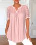 SPECIFIKATIONER Topptyp: Blusar Stil: Elegant Material: Bomullsblandningar, Spets Tillfälle: Dagligen Urringning: V-hals_V Mönstertyp: Enfärgade Typ av ärm: Vanlig ärm Ärmlängd: Kortärmad Passform typ: Vanlig Säsong: Vår, Sommar, Höst Detaljer: Lappverk, Knappar Paketet innehåller: 1 x Blus STORLEKSTABELL(cm) Storlek Byst Längd S...