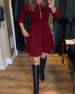 Enfärgad elegant klänning med volang ärm och V-ringning