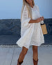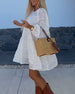 SPECIFIKATIONER Stil: Elegant Material: Bomullsblandningar, Spets Klänningstyp: Skiftklänning Klänning längd: Knälängd Urringning: V-hals_V Mönstertyp: Enfärgade Typ av ärm: Flare ärm Ärmlängd: Halvärm Detaljer: Lappverk, Urgröpande Passform typ: Vanlig Säsong: Vår, Sommar, Höst Tillfälle: Dagligen Paketet innehåller: 1 x Klänning STORLEKSTABE...