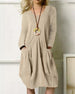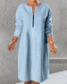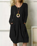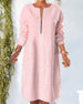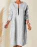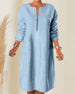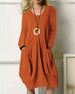 SPECIFIKATIONER Stil: Casual Material: Bomull och linne Klänning längd: Knälängd Urringning: Rund nacke Mönstertyp: Enfärgad Typ av ärm: Vanlig ärm Ärmlängd: Långärmad Detaljer: Ficka Passform typ: Lös Säsong: Vår, Höst Tillfälle: Dagligen, Arbete Förpackningen innehåller: 1 x Klänning STORLEKSTABELL(cm) Storlek Byst Längd Armläng...