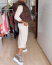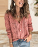 Enfärgad ihålig V-ringad Ribbstickad Kofta