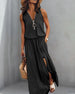 SPECIFIKATIONER Stil: Enkel, Semester Material: 95% polyesterï¼?% spandex Klänningstyp: Tank Klänning längd: Maxi Urringning: V-hals_V Mönstertyp: Enfärgade Ärmlängd: Ärmlös Detaljer: Slits, Dragkedja Passform typ: Vanlig Säsong: Vår, Sommar, Höst Tillfälle: Dagligen, Semester Paketet innehåller: 1 x Klänning STORLEKSTABELL(cm) Storlek ...