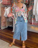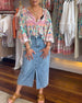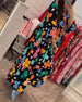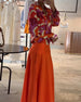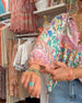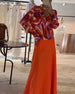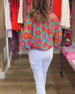 Färgglad blommig blus med V-ringning och trekvartsärm