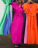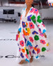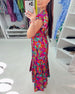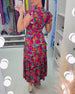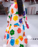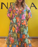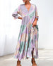 Färgglad långärmad klänning med rufsiga ärmar och knytband