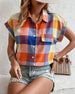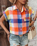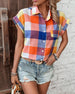 Färgglad rutmönster avslappnad kortärmad skjorta