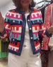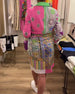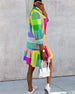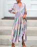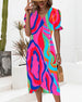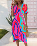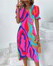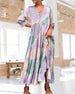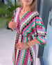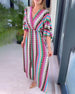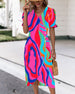 Färgglad klänning med lapptäcketryck med V-ringning och trekvartsärm