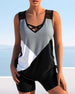 SPECIFIKATIONER Stil: Semester Material: 15% Spandex, 85% Polyester Tillfälle: Semester Urringning: V-hals_V Mönstertyp: Färgblock Ärmlängd: Ärmlös Linnetyp: Tankini BH typ: Trådlös BH Nedre typ: Shorts Passform typ: Skinny Säsong: Sommar Detaljer: Lappverk, Dragsko, Spets Paketet innehåller: 1 x Tankini STORLEKSTABELL(cm) Sto...