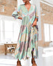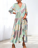 SPECIFIKATIONER Stil: Elegant Material: Bomullsblandningar Klänningstyp: A-linje Klänning längd: Maxi Urringning: V-hals_V Mönstertyp: Tryckt Typ av ärm: Vanlig ärm Ärmlängd: 3/4 ärm Passform typ: Vanlig Säsong: Vår,Sommar Tillfälle: Dagligen Paketet innehåller: 1 x Klänning STORLEKSTABELL(cm) Storlek Byst Längd S 95 128 M 100 129 L 10...
