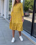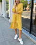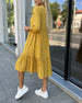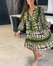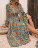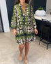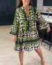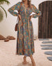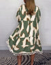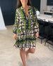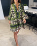 SPECIFIKATIONER Stil: Enkel Material: 100% Polyester Klänningstyp: Skiftklänning Klänning längd: Knälängd Urringning: V-hals_V Mönstertyp: Tryckt Typ av ärm: Flare ärm Ärmlängd: Långärmad Detaljer: Tofs, Knappar Passform typ: Lös Säsong: Vår, Sommar Tillfälle: Dagligen Paketet innehåller: 1 x Klänning STORLEKSTABELL(cm) Storlek Bys...