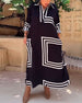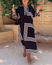 SPECIFIKATIONER Stil: Enkel Material: 5% Spandex,95% Polyester Klänningstyp: Skiftklänning Klänning längd: Midi Urringning: V-hals_V, Slag Mönstertyp: Randig Typ av ärm: Vanlig ärm Ärmlängd: 3/4 ärm Detaljer: Knappar Passform typ: Lös Säsong: Sommar Tillfälle: Dagligen Paketet innehåller: 1 x Klänning STORLEKSTABELL(cm) Storlek Bys...